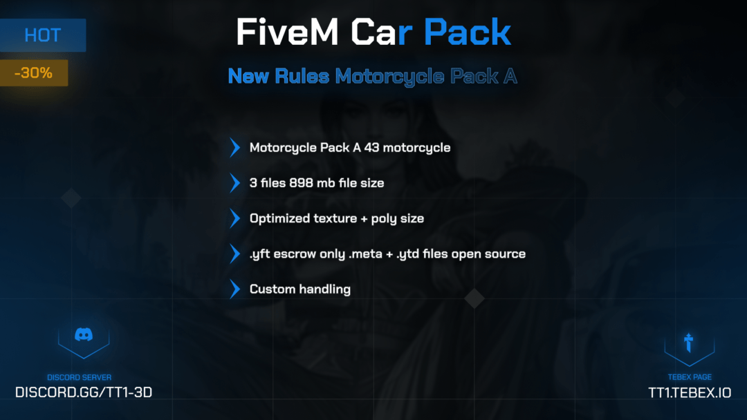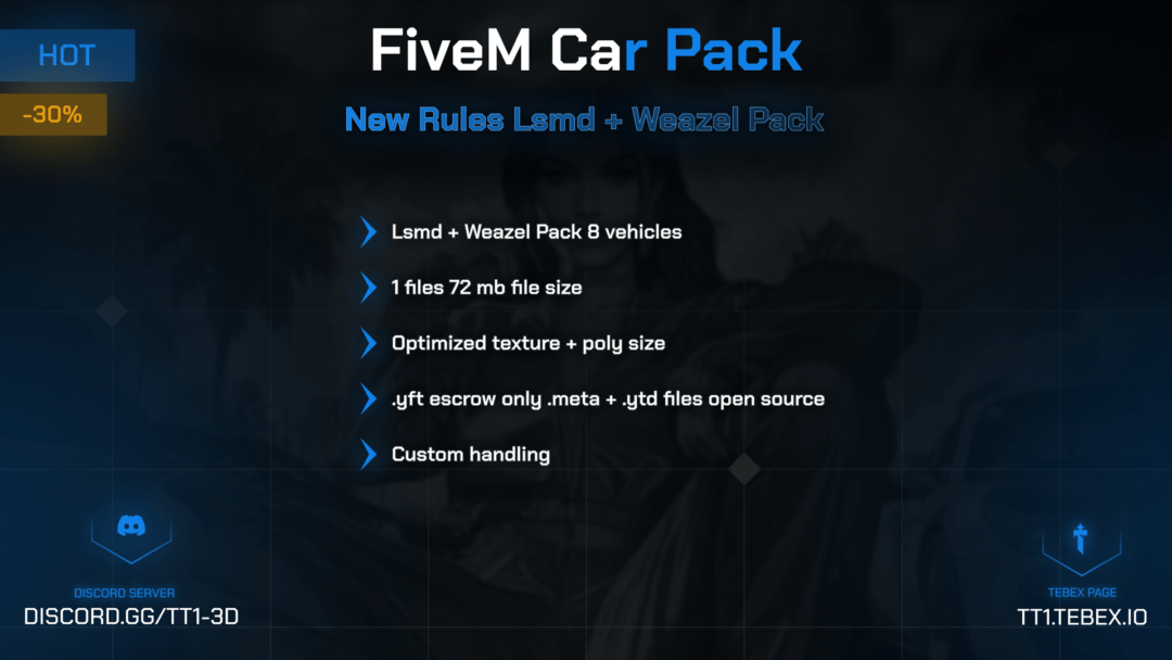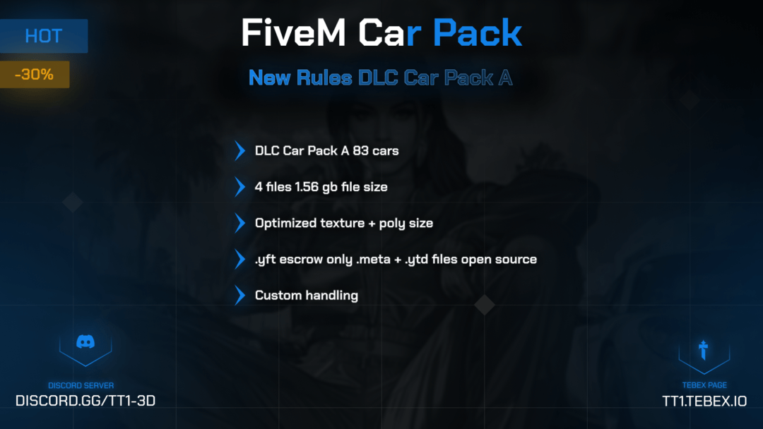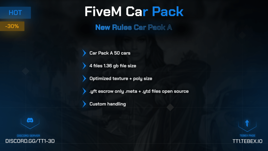 Enhance your gaming experience with carefully selected, performance-focused, and detailed vehicle models. This optimized and high-quality pack ensures smooth driving on your server. All vehicles are specifically adapted for FiveM, providing excellent performance.